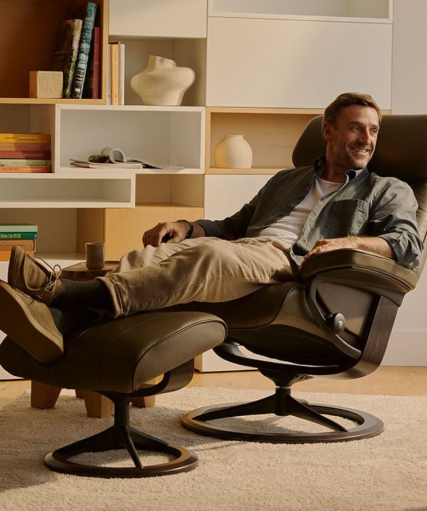 Un confort ultime. Stressless Tokyo a un dos fin et un coussin légèrement rembourré d’un rare confort. Ajoutez les célèbres caractéristiques de Stressless et vous obtenez un fauteuil moderne au confort exceptionnel. Disponible dans plusieurs variantes : un dos haut doté d’un coussin ajustable pour la nuque, un dos bas ou un dos standard avec un repose-tête confortable qui peut être positionné jusqu’à 10 cm plus haut. Ce modèle est disponible avec une hauteur standard ou avec une base plus haute (+4 cm de hauteur d’assise et de hauteur).